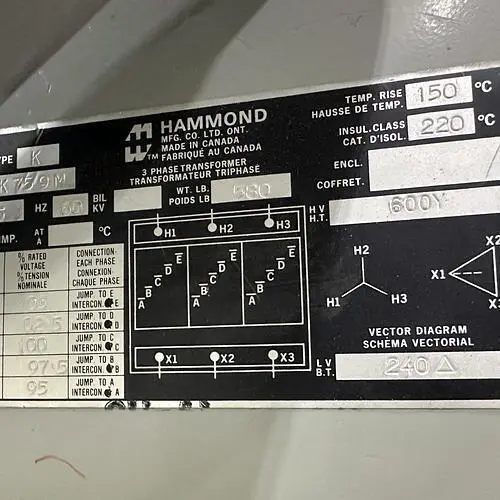 HAMMOND K759M 600V 75KVA DRY-TYPE TRANSFORMER